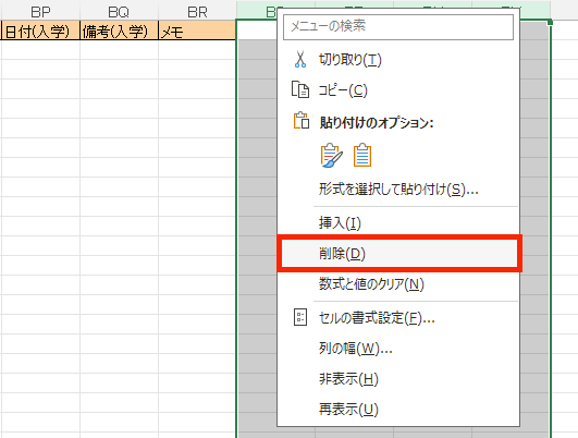 ※手順B-2で最後列より右側に「●」などのデータがある場合は削除してください